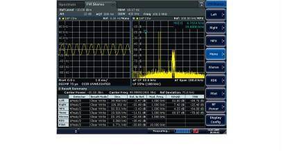 Опция R&S®FSV-K7S FM Stereo Measurements расширяет функциональность опции R&S®FSV-K7, предоставляя измерения для FM-стерео передатчиков. Встроенный стерео декодер измеряет частотное отклонение каналов левого, правого, моно и стерео, а также пилотный и RDS несущие. Анализируются искажения гармоник, анализ во временной и частотной области соответствующего канала. Для выполнения стандартных измерений S/N отношения доступны обязательные аудиофильтры и квазипиковые детекторы. Показывается результат измерений всех каналов одновременно, что позволяет измерить перекрестные помехи без переключения между каналами. Это означает, что все необходимые измерения для FM-стерео передатчиков могут быть выполнены с использованием опции R&S®FSV-K7S. Комплексные функции измерений для полного анализа FM-стерео включают измерение частотного отклонения в каналах MPX, L, R, M, S и измерение частотного отклонения пилотного и RDS несущих. Измерение перекрестных помех, измерение мощности несущей и частоты несущей, измерение аудиочастоты, измерение абсолютного и относительного отклонения для легкого выполнения измерений S/N отношения и измерения проницаемости для перекрестных помех. Отображение аудиочастотного спектра и для каждого канала. До четырех окон измерения. Разнообразие аудиофильтров и детекторов для выполнения стандартных измерений включают фильтр ITU-R, взвешенный и невзвешенный фильтры верхних частот 20 Гц, 50 Гц, 300 Гц и фильтры нижних частот 3 кГц, 15 кГц, 23 кГц и 150 кГц. Выборочная демфаза 50 мкс, 75 мкс, 750 мкс. Детекторы: +/-peak/2, + peak, -peak, RMS, RMSxSQR2, квазипик (соответствует ITU-R 468) и квазипикxSQR2. Встроенное измерение искажений THD. Автоматически настраивается на основной сигнал. Одновременное отображение значений SINAD и THD. Выборочное измерение искажений THD индивидуальных гармоник с использованием маркерных функций в аудиочастотном спектре.