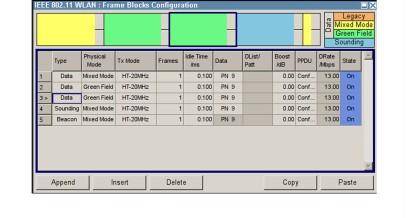 Опция R&S®SMBV-K54 для R&S®SMBV100A генерирует сигналы физического уровня в соответствии со стандартом IEEE 802.11a/b/g/n/j/p. В режимах OFDM поддерживаются все скорости передачи данных стандартов IEEE 802.11a и IEEE 802.11g от 6 Мбит/с до 54 Мбит/с, а также скорости передачи данных от 3 Мбит/с до 27 Мбит/с стандартов IEEE 802.11j и 802.11p. То же самое относится к режиму CCK с скоростями передачи данных от 1 Мбит/с до 11 Мбит/с, а также к режиму PBCC, где к стандарту IEEE 802.11b добавлена опциональная расширенная скорость передачи данных до 22 Мбит/с. Для 802.11n поддерживаются полосы пропускания канала 20 МГц и 40 МГц. Опция поддерживает режим высокой пропускной способности (HT) и включает возможности MIMO (генерация от одного до четырех пространственных потоков, от одной до четырех передающих антенн).