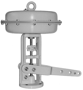 Пневматический привод Samson 3204-1 с вращающимся рычагом предназначен для использования в регулирующих системах. Пневматическое управление обеспечивает линейное движение привода, с диапазоном перемещения от 15 мм до 30 мм. Привод оснащен стандартной версией, обладает обратимым действием аварийной остановки. Имеет низкую высоту, высокие усилия, быструю скорость хода. Предназначен для работы с заслонками и жалюзи, состоит из рычага с монтажной поворотной рукояткой и пневматического привода типа 3271. Различные диапазоны настройки обеспечиваются изменением количества пружин (от 3 до 12) или их сжатия. Не требует специальных инструментов для изменения диапазона настройки или изменения направления действия. Суставы с плоскими подшипниками обеспечивают безотказную работу исключительно без использования немагнитных металлов.